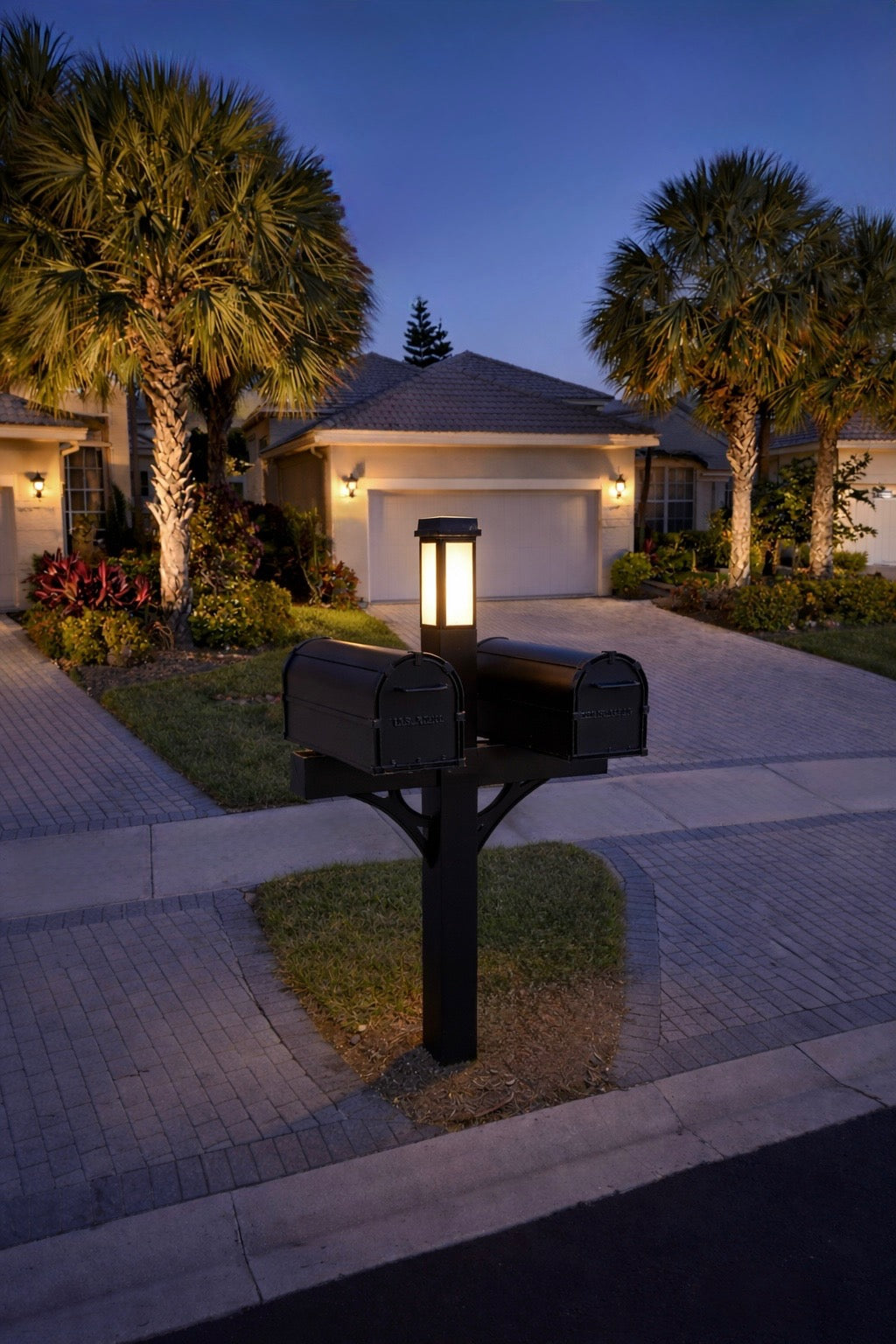 Solar Illuminated Hammered Bronze Single Post Mailbox